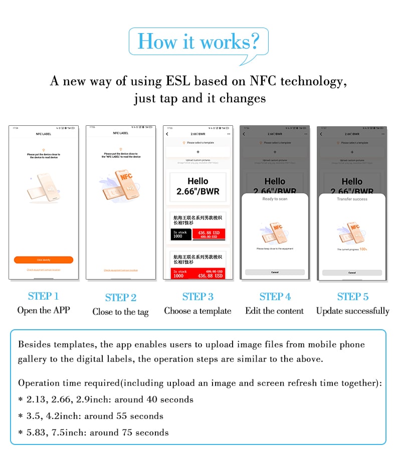 携帯電話のNFCでリフレッシュできるデジタルラベルです。これにより、小売店、オフィス、公共スペースなど、より多くのアプリケーション シナリオへの電子ペーパー スクリーンの参入が加速されます。
